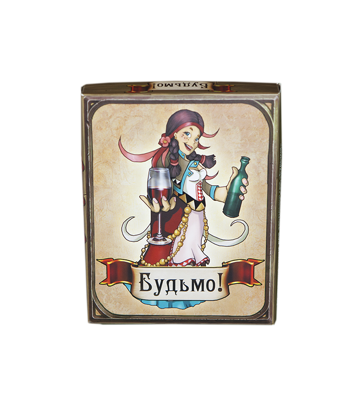 Настільна карткова гра для веселого застілля в компанії друзів. Гра містить 52 карти від двійки до тузи, оформлені авторськими малюнками.
